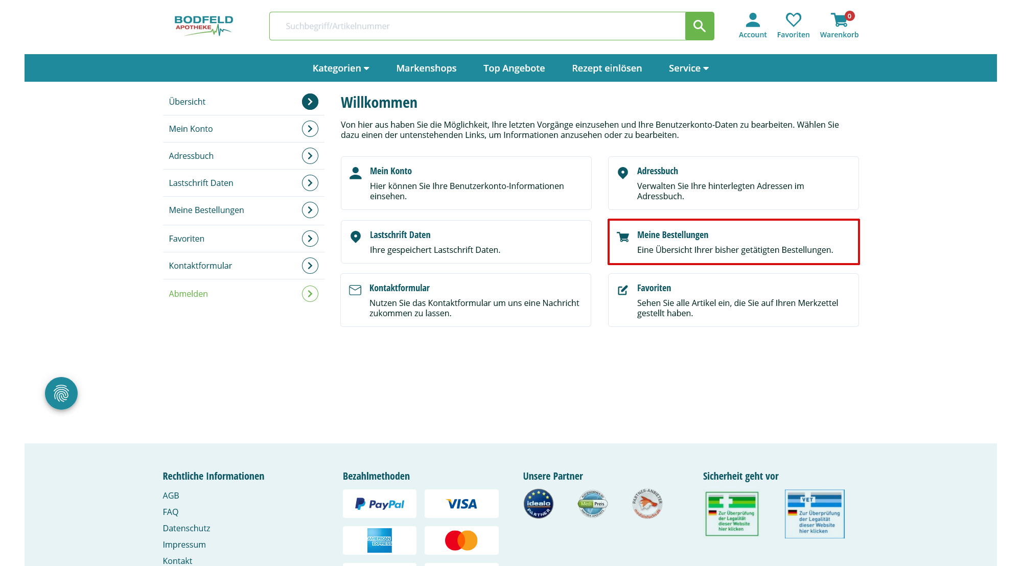Ich benutze Sicherheitssoftware der Firma „AO Kaspersky Lab.„ oder "Avira Operations GmbH & Co. KG.?". Wenn ich die Zahlweise PayPal wähle und meinen Warenkorb bezahlen möchte, öffnet sich ein neues Fenster/Tab und wenn ich zur Seite der Bodfeld Apotheke zurückgeleitet werde, lande ich wieder auf der Startseite und mein Warenkorb ist leer. Wie kann ich verfahren?